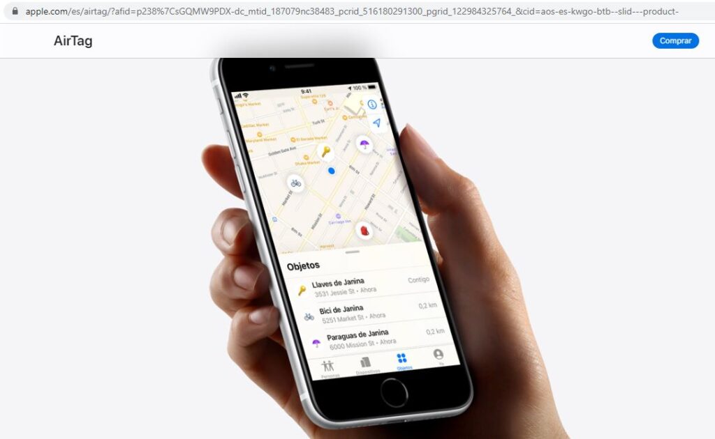 Adicionalmente, cada AirTag solo puede estar asociado a una sola cuenta de iCloud. Es decir, dos personas no pueden localizar el mismo AirTag.