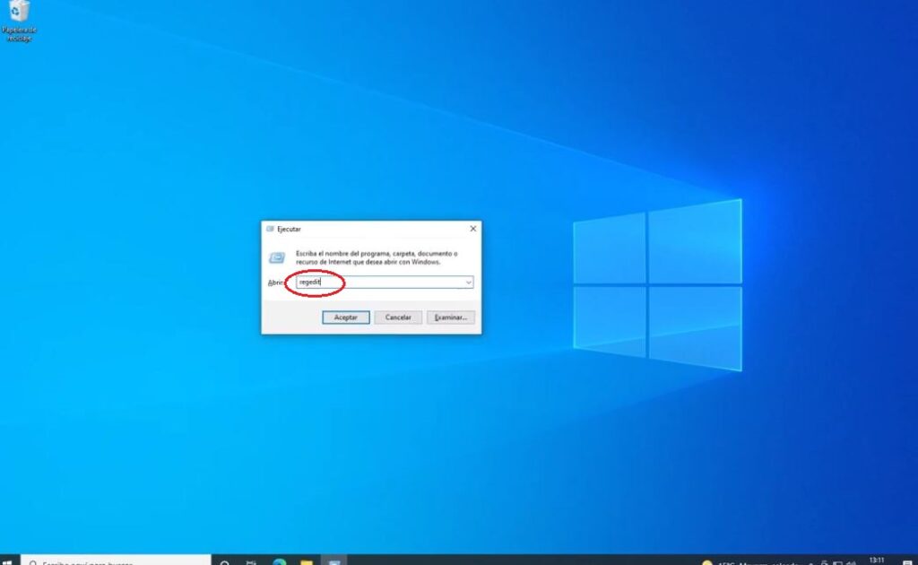 2. Allí escribirás la palabra Regedit, y pulsas el botón >.