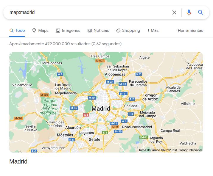 Por mencionar un ejemplo, si buscas “MAP: Madrid”, te aparecerá directamente el mapa de esta ciudad.