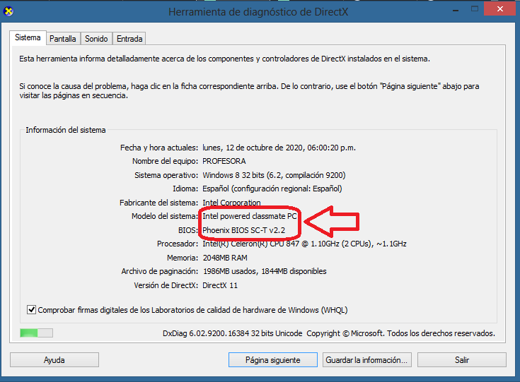 - En donde dice “modelo del sistema” te aparecerá el modelo y la marca de tu placa. Y en “versión y fecha de BIOS” podrás ver cuál es la versión de BIOS que tienes instalada.