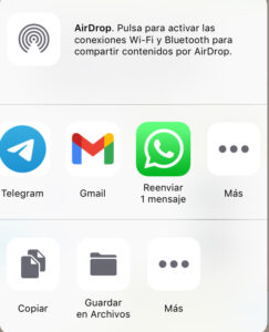 Te va a aparecer el modal que te pide que selecciones la app en donde quieres compartir el audio seleccionado.