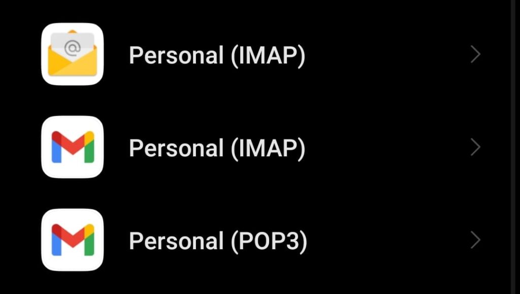 Ahora, selecciona la opción “Google”. Si tienes un email corporativo, o si tienes otro tipo de email que no sea el de Google, puedes intentar usar las opciones “Corporate” o “IMAP”.