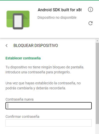 Teclea la contraseña temporal en las dos casillas de la página del Android Device Manager, y clica en “siguiente”.