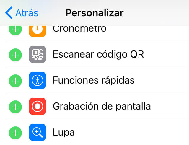 Finalmente, deslízate hacia abajo hasta que encuentres una opción que diga “Grabación de pantalla”, y toca el icono del “+” que aparece al lado de esta opción.
