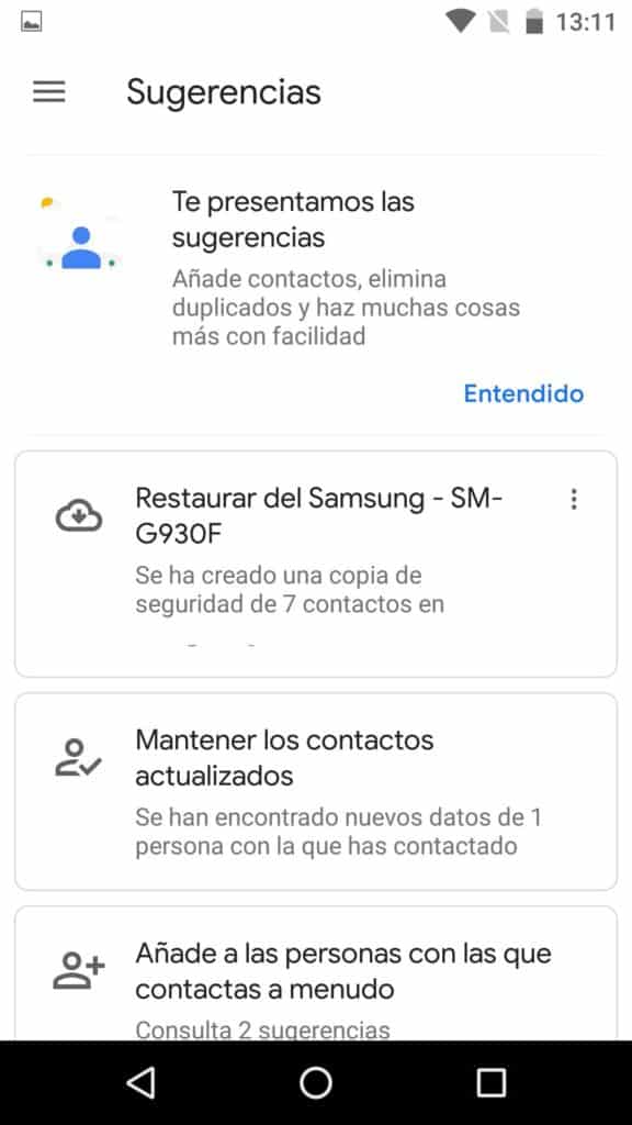 La aplicación nativa de contactos de mostrará sugerencias cada tanto. Una de estás sugerencias puede ser el fusionar los contactos duplicados.