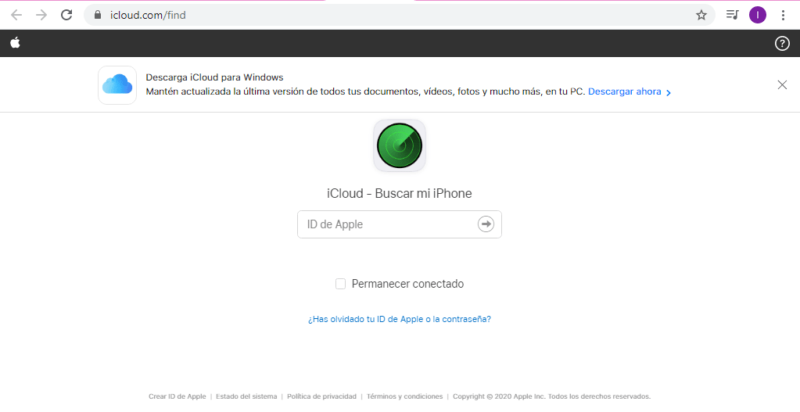 Lo primero que debes hacer es usar un ordenador cualquiera u otro dispositivo iOS para ingresar en este link y colocar tanto tu ID de Apple como tu contraseña. Así iniciarás sesión en iCloud y podrás ver la ubicación de tu móvil.