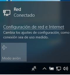 Primero, clica en el icono del Wi-Fi o del ordenador en la barra de tareas de tu ordenador. Esto te abrirá una ventanita indicándote la red a la que estás conectado. Ahora, clica en «Configuración de red e internet».