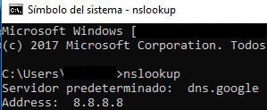Si quieres confirmar que tu servidor DNS ha cambiado, abre el símbolo del sistema, y escribe el comando «nslookup».