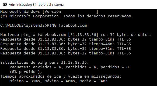 Por lo tanto, si quieres averiguar alguna de las direcciones IP de Facebook, puedes usar el comando “PING facebook.com” desde el símbolo del sistema en un ordenador con Windows.