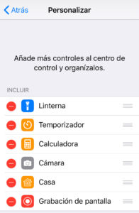 Si por alguna razón deseas quitar la herramienta para grabar pantallas del Centro de control, simplemente toca el símbolo “-” que aparece al lado de la opción “Grabación de pantalla” del menú en donde habías activado la herramienta de grabación de pantalla.