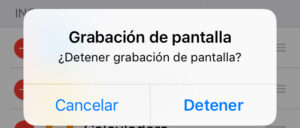 Modal que te pregunta si quieres dejar de grabar la pantalla de tu iPhone, el cual muestra la opción “Detener”.