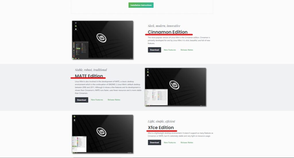 De igual manera, depende la distribución seleccionada, algunos parámetros en la configuración deberían cambiar. Justamente por este motivo te recomiendo utilizar alguna versión de Linux Mint, aunque no sea la última de todas. Por ejemplo puedes probar Linux Mint 19.3 (Trisia) o Linux Mint 20.1 (Ulyssa).