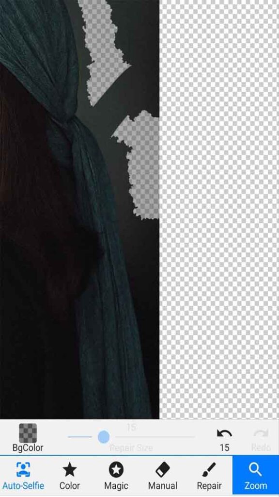 Esto lo puedes hacer con la herramienta “Repair”. Simplemente desliza el dedo encima de la parte de la foto que borraste accidentalmente, y podrás recuperar esa parte de la imagen.