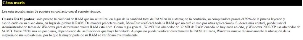 El manual de instrucciones está en inglés pero al abrirlo con un navegador como Google Chrome puedes traducirlo. Esto es por si quieres leerte con detalle las instrucciones de MemTest.
