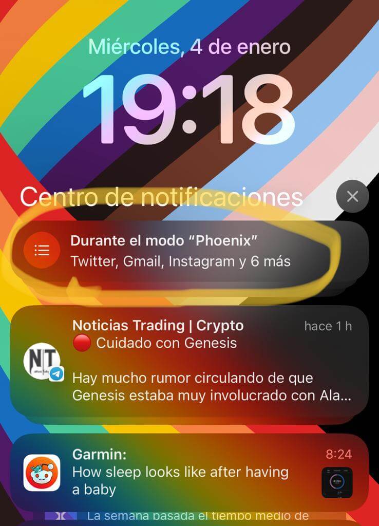 ¿Entonces? Pues nada, a diferencia de la opción oficial de Garmin, de esta manera las notificaciones no notificadas siguen apareciendo en el “Centro de Notificaciones” agrupadas en un “Durante el modo Phoenix”. Solo tienes que darle ahí y ya puedes ver todo lo que te has perdido sin ir app por app. Es decir, estás a un “Click” adicional de ver esa información.
