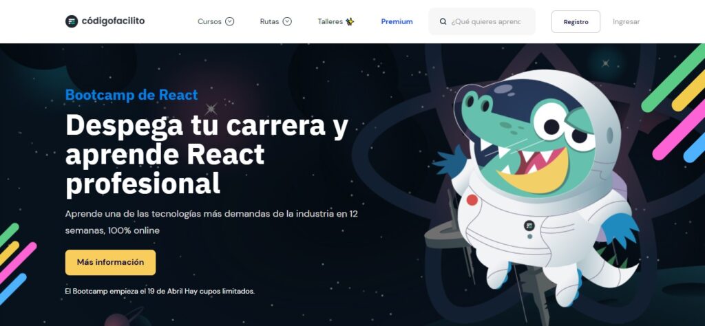 Por otro lado si lo que buscas es hacer algún curso especifico online, la escuela digital de Código Facilito tiene un amplio catalogo de diversas temáticas.