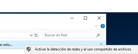 Carpeta “Red” con el mensaje “El uso compartido de archivos está desactivado”.