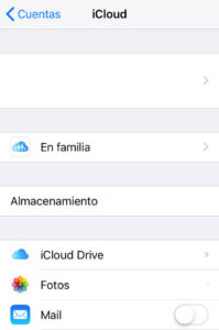 Menú del correo de iCloud de un usuario, el cual muestra que la opción “Mail” está desactivada.