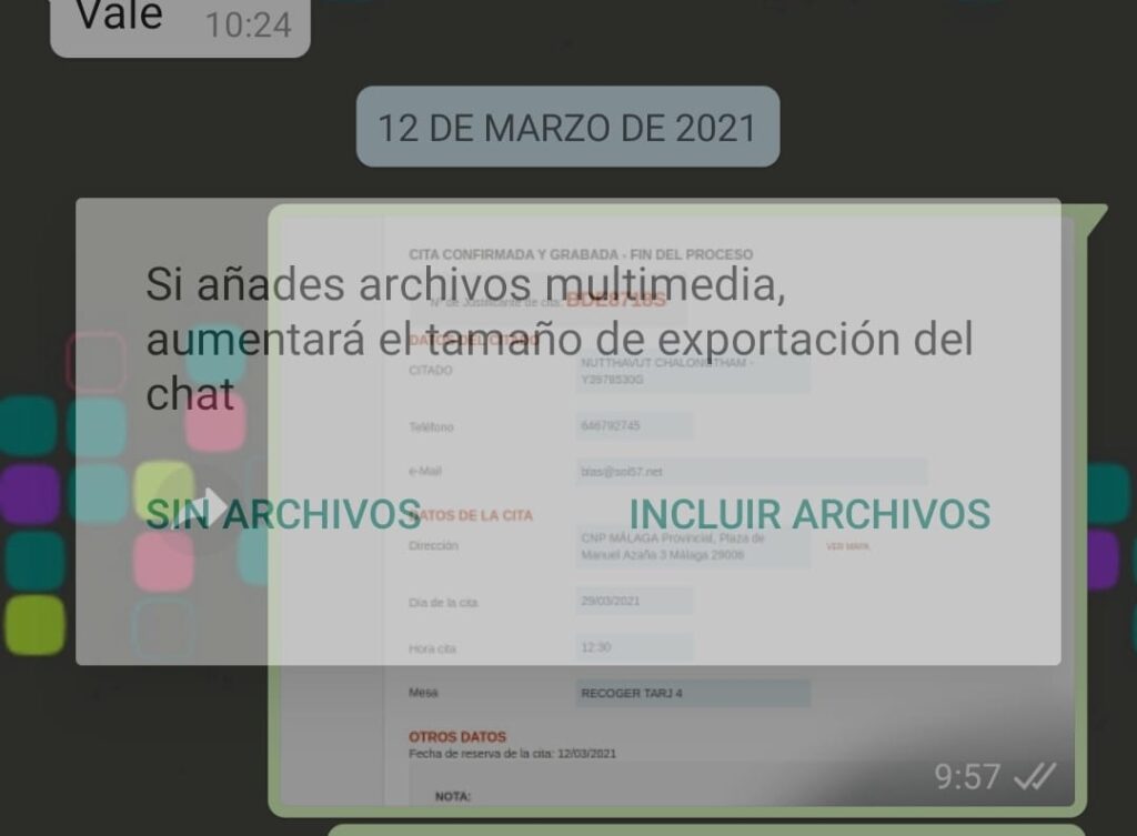 Por supuesto, si adjuntas todos los archivos del chat de WhatsApp al exportarlo, el proceso de exportación se va a tardar más que si sólo exportaras el texto del chat.