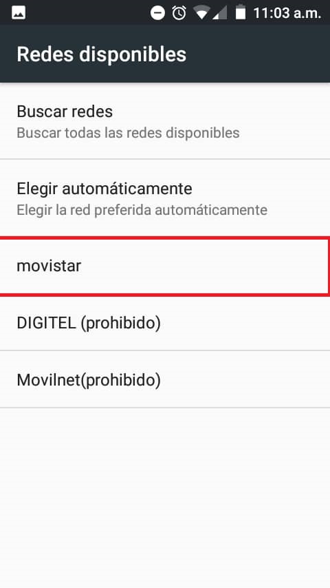 - Elige la red que corresponde a tu proveedor de servicios (Ejemplo: Movistar, Vodafone, Orange, Digitel, etc.)