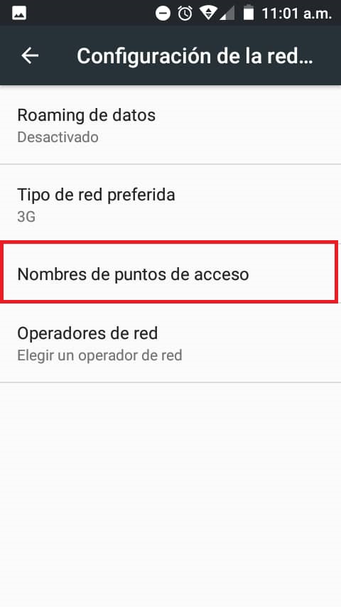 - Pulsa en la opción APN o Nombre de punto de acceso.
