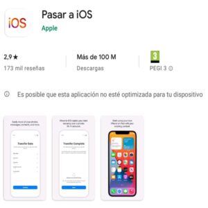 Después, coge tu Android, y descárgate una app de Apple llamada “Pasar a iOS”. Esta aplicación la puedes encontrar en la Google Play Store en este enlace.