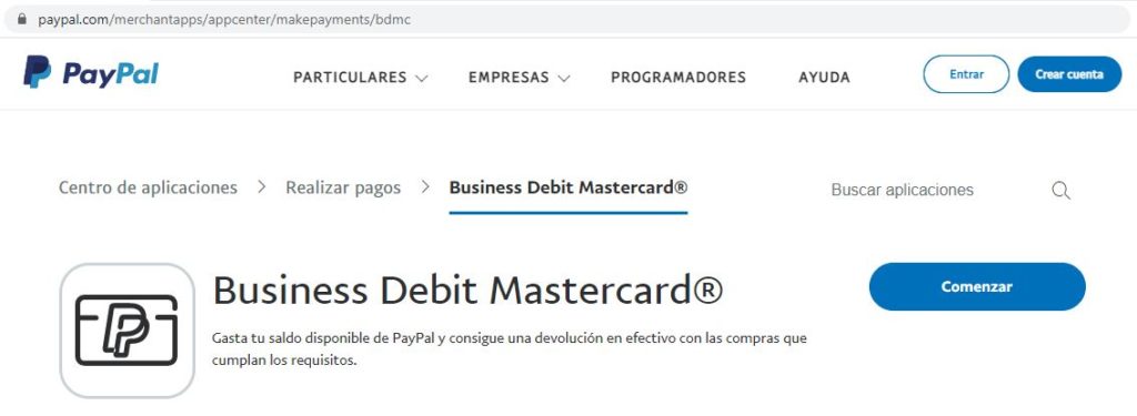 Entre las tarjetas Mastercard que ofrece PayPal están la tarjeta prepago de PayPal o “PayPal Prepaid”, la tarjeta de débito personal de PayPal o “PayPal Cash”, y la tarjeta PayPal de débito Business Mastercard o “Business Debit Mastercard”.