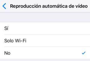 Luego, deslízate hacia abajo, y toca la opción “Reproducción automática de vídeo”.